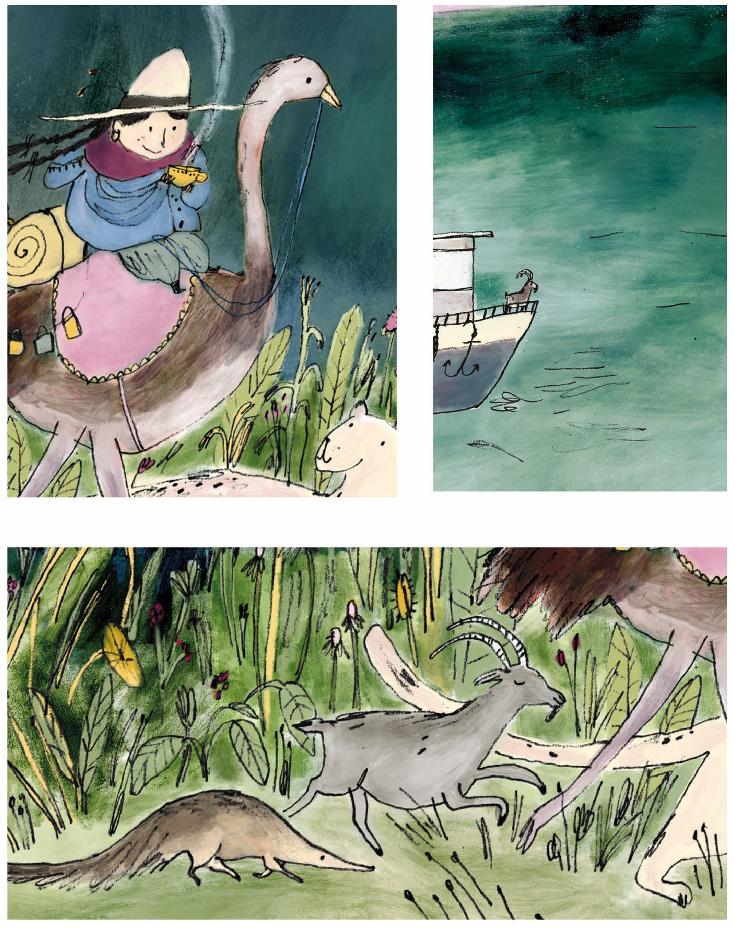 And so she traveled on and on with her animal friends, and in every village, the tea tasted of new stories and foreign places.