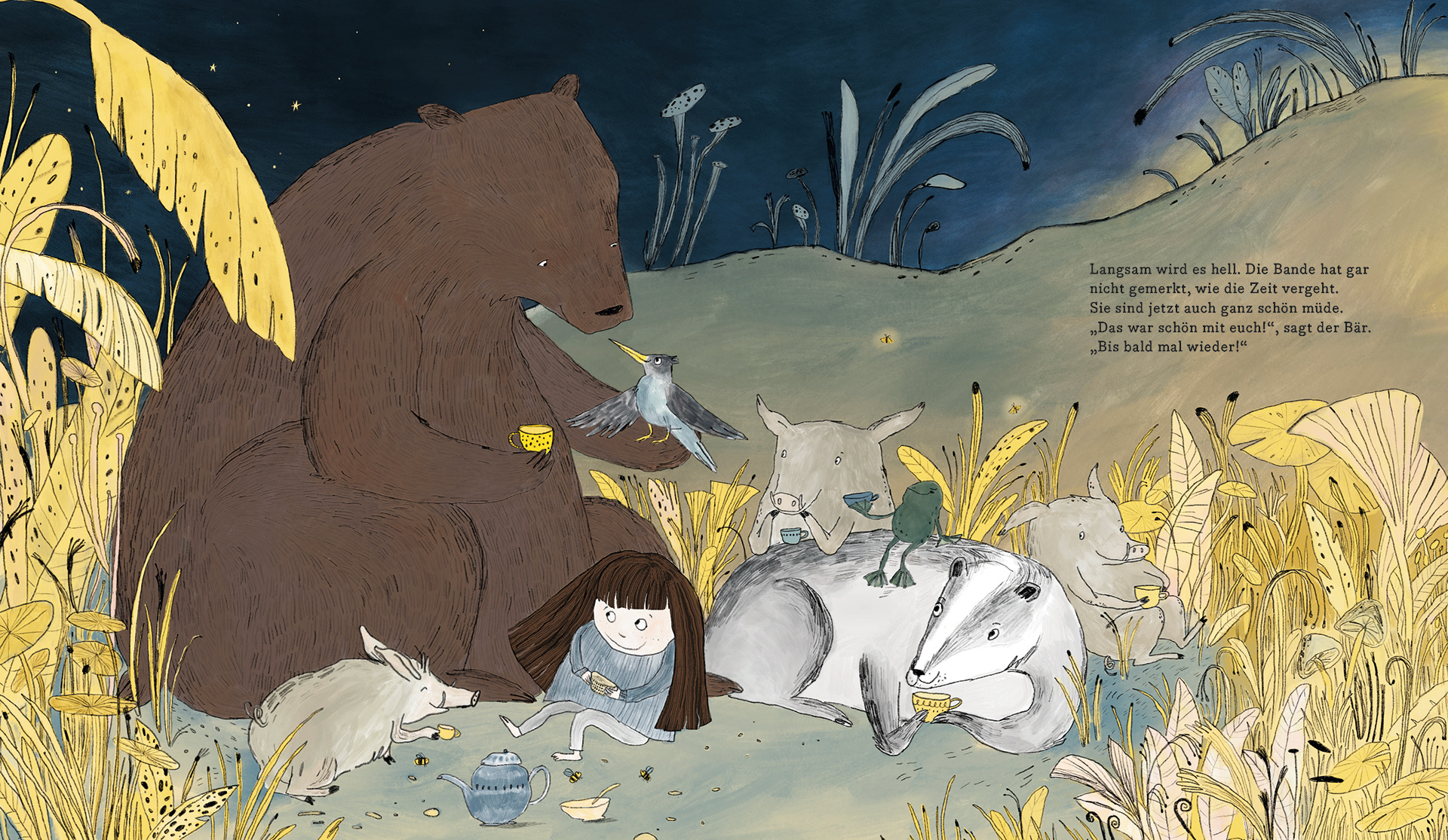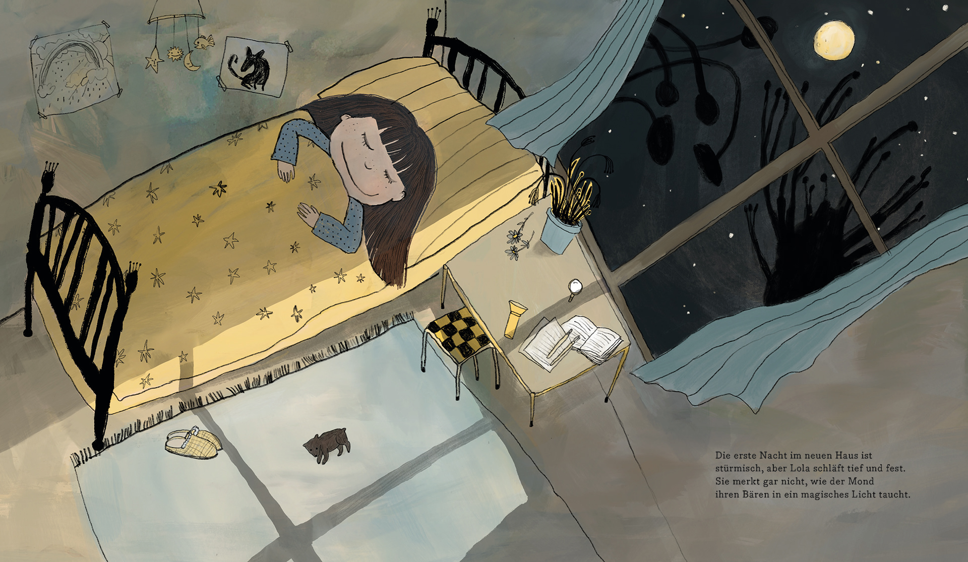 Lola ist neu in der Stadt und noch ein bisschen schüchtern. Am liebsten verbringt sie Zeit mit ihrem Spielzeugbären. Dann passiert etwas Seltsames. In einer magischen Nacht wird ihr Bär lebendig! Zusammen erkunden die beiden den wilden Wald hinter dem Haus. Im Nu schließt der Bär Freundschaft mit den Waldbewohnern. Bald schon ziehen sie als richtige Bande durch die Nacht! Und als der Morgen kommt ist Lola schon viel mutiger.